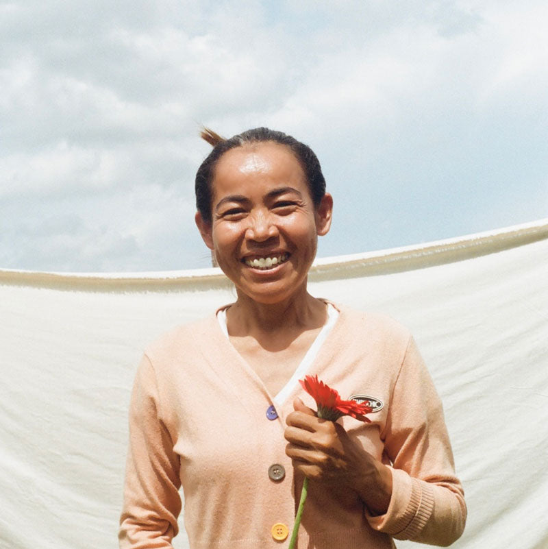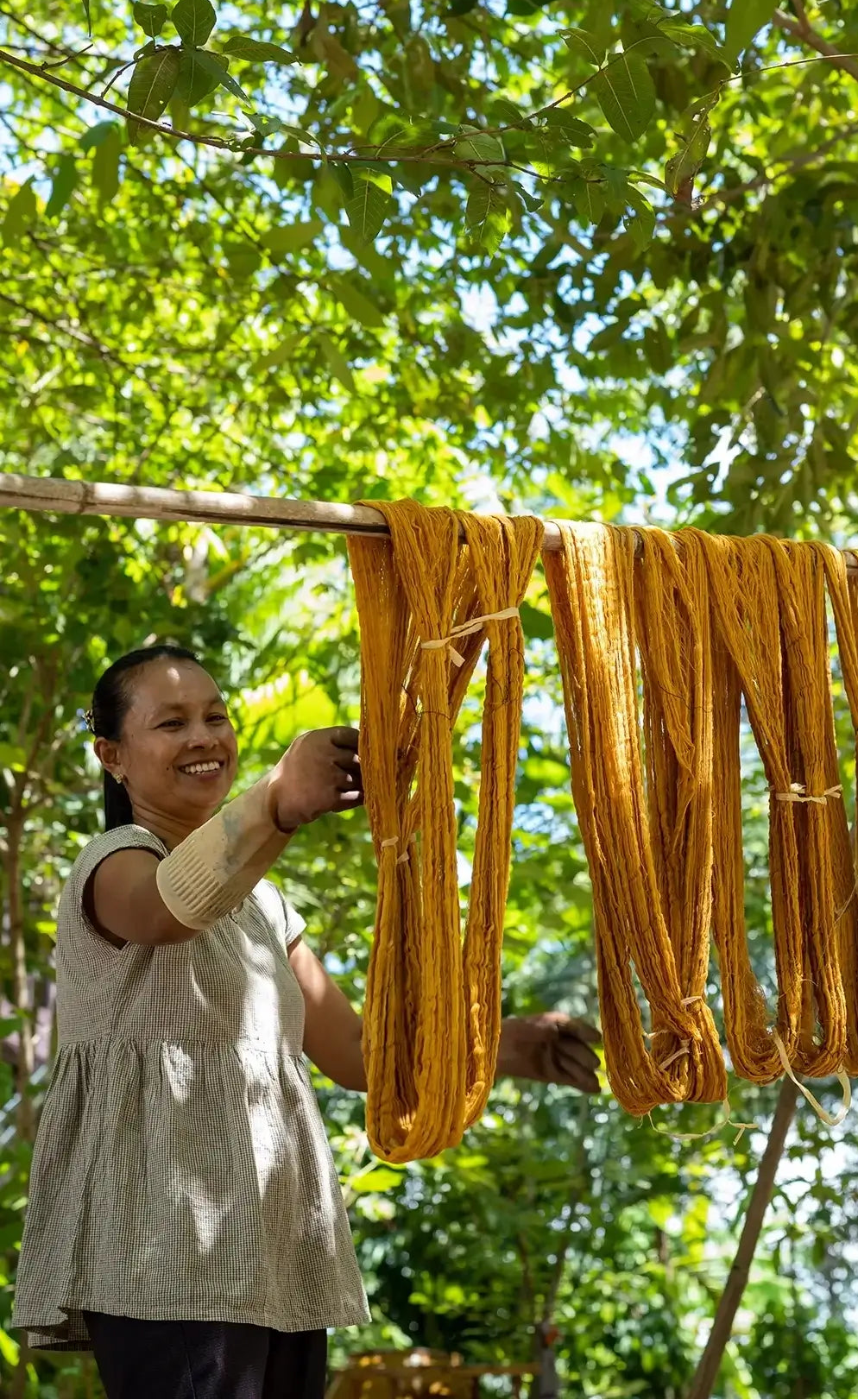Our design is inspired by the beauty of Cambodia. Our prints and colours show clouded leopards, fig trees, and fruit markets, whilst our silhouettes draw from traditional Khmer dress. Our cotton is dyed with native Sappan Wood trees, and our raw silk carries thousands of years of craft. Heritage is timeless.